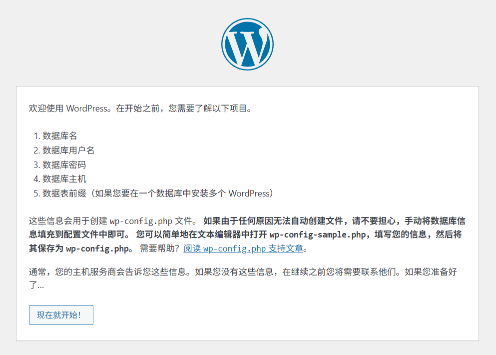 5 刷新网页进入wordpress安装界面(如果刷新后报错http500可能是php-mysql没有安装)