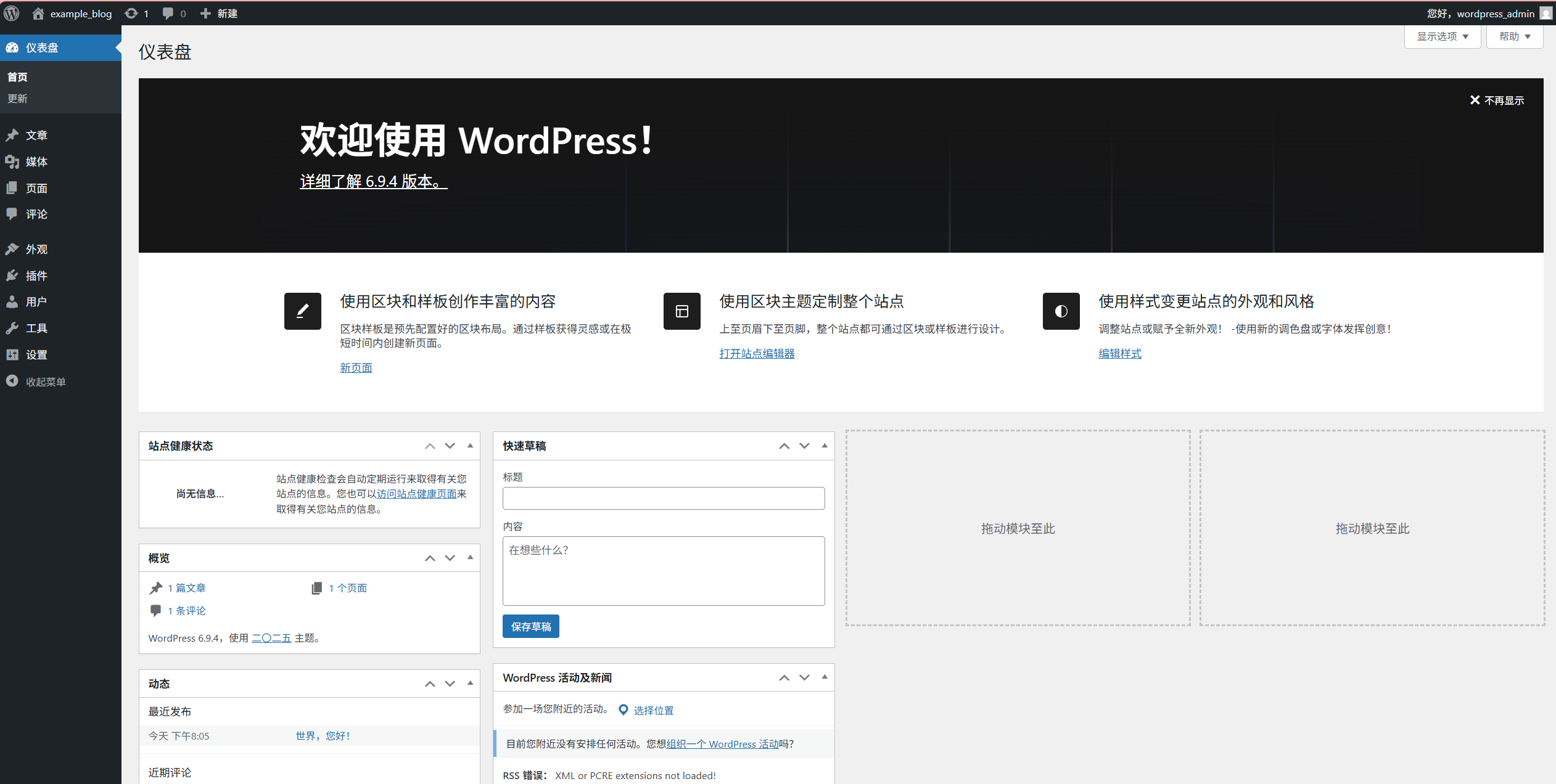 现在我们已经拥有一个完整可用的WordPress站点。