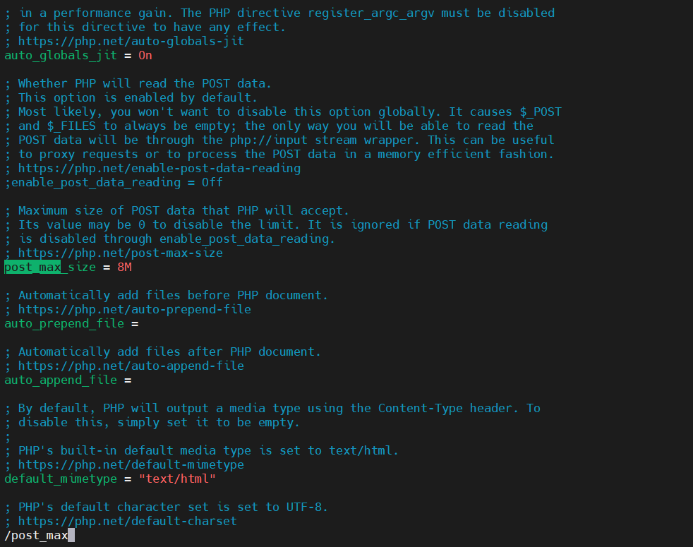 1 | post_max_size = 8M -> post_max_size = 16M |