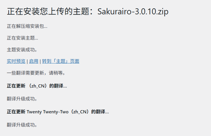 再次上传主题文件即可上传成功